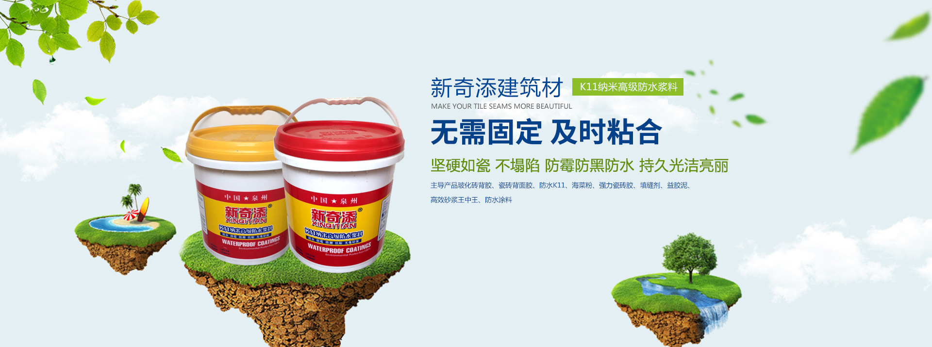 泉州市新奇添建筑材料有限公司成立于2010年,注冊(cè)資金500萬(wàn)元,是一家專(zhuān)業(yè)從事高端防水材料、新型墻體材料、建筑材料設(shè)備的研發(fā)、生產(chǎn)和銷(xiāo)售的新興高科技企業(yè)。公司人員組成,以高、中級(jí)專(zhuān)業(yè)人才為主體。其高科技含量達(dá)國(guó)內(nèi)外同行業(yè)先進(jìn)水平,在所涉領(lǐng)域具備強(qiáng)大的科技優(yōu)勢(shì)與核心競(jìng)爭(zhēng)力。公司憑借強(qiáng)大的研發(fā)能力和成熟的高科技產(chǎn)品,在綠色環(huán)保建材領(lǐng)域異軍突起。